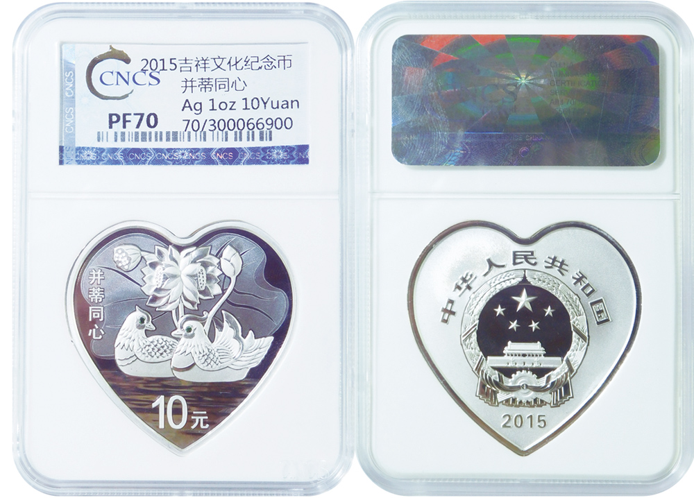 編號:2016-0406-ag-30g,年號:2016,國別:中國,面額:10元,材質(zhì):銀,成色:99.9%,質(zhì)量:精制,重量:30克,形狀:心形,直徑:外接正方形邊長40mm,發(fā)行量:60000枚。