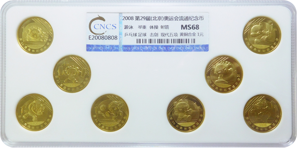 CNCS最新推出“奧運紀念幣評級套裝”,此次評級幣套裝共收錄了我國2006年發行至今共三組奧運普通紀念幣8枚,紀念幣面值均為1元。