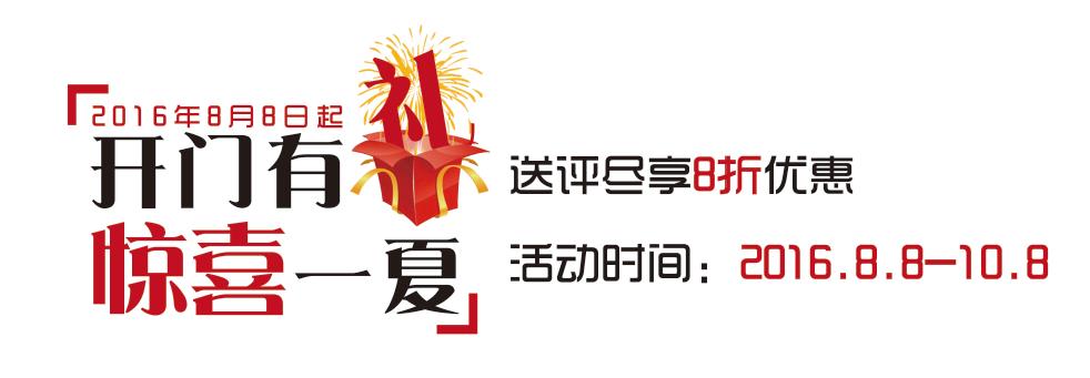 開業(yè)酬賓:送評盡享八折優(yōu)惠,活動時間為2016年8月8日至2016年10月8日。
