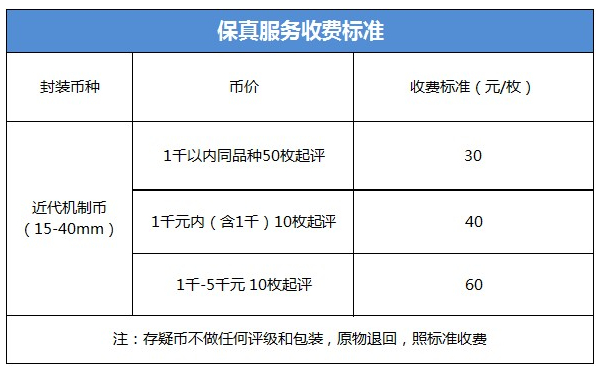 也可申請“保真鑒評”服務,收費標準按照錢幣對應的檔次