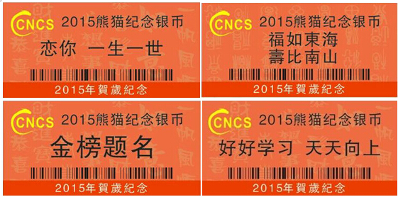 華龍盛世(CNCS) 2015年1月20日推出評級賀歲版標簽,服務范圍包括2015羊年紀念幣、世界五大投資銀幣即:中國熊貓紀念幣、美國鷹洋普制銀幣(999純銀)、加拿大楓葉普制銀幣(999純銀)、奧地利音樂普制銀幣(999純銀)、澳大利亞考拉普制銀幣(999純銀)可以選用,每枚錢幣最低僅需15元服務費即可得賀歲版標簽。