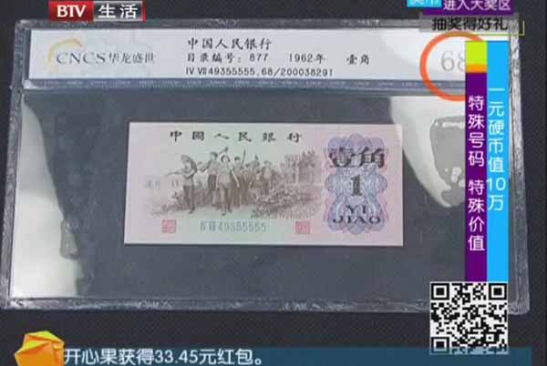 王春利說,人民幣從第一套到第三套因為已經退出流通,進入收藏領域可以收藏也可以買賣,但是第四套第五套人民幣僅可以收藏,因為正在流通的人民幣不能進行買賣。而第三套人民幣的一毛錢,價值也相對較高,如果冠號較為特殊或者較為稀少價值還會有更高的可能性。另外,錢幣保存越完好,它的分值就越高,價值相對也就越高。
