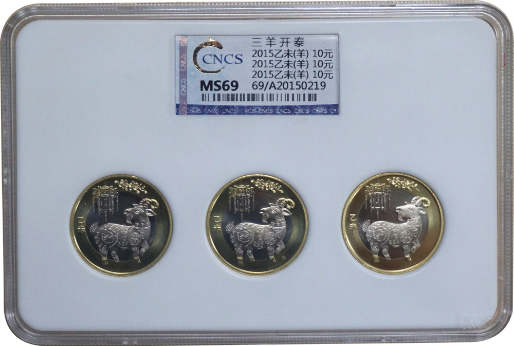 分別由三枚羊年紀念幣(一輪)、三枚羊年紀念幣(二輪)以及兩輪羊年紀念幣共同組合的三種形式構(gòu)成。其中,兩輪共同組合的羊年紀念幣分別是兩個羊年紀念幣(二輪)和一個羊年紀念幣(一輪)。 這三種不同形式的“三羊開泰”給廣大客戶提供了更為多樣的選擇空間。